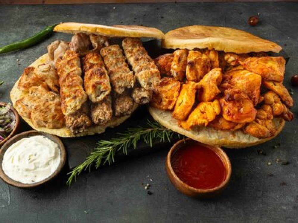 Ассорти шашлыков в хлебе на небольшую компанию