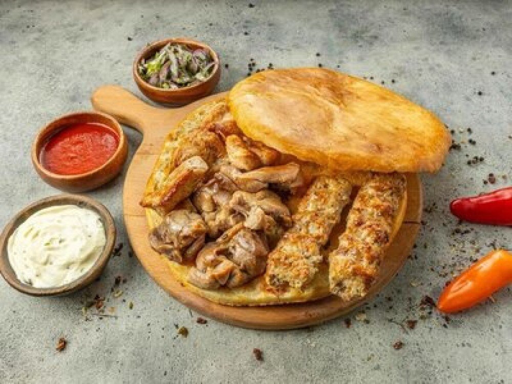 Шашлык в хлебе из трех видов люля-кебаба