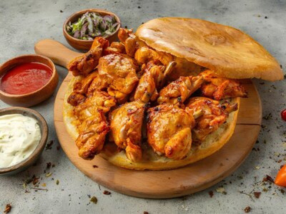 Шашлык в хлебе из свинины и курицы на 10 персон
