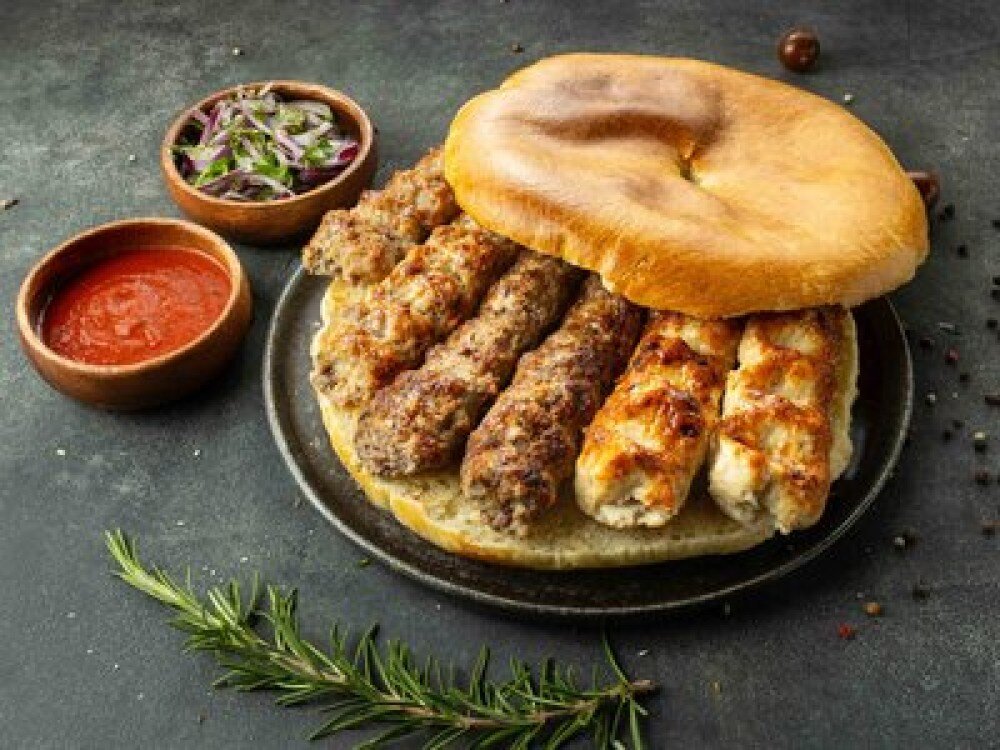 Шашлык в хлебе из трех видов люля-кебаба